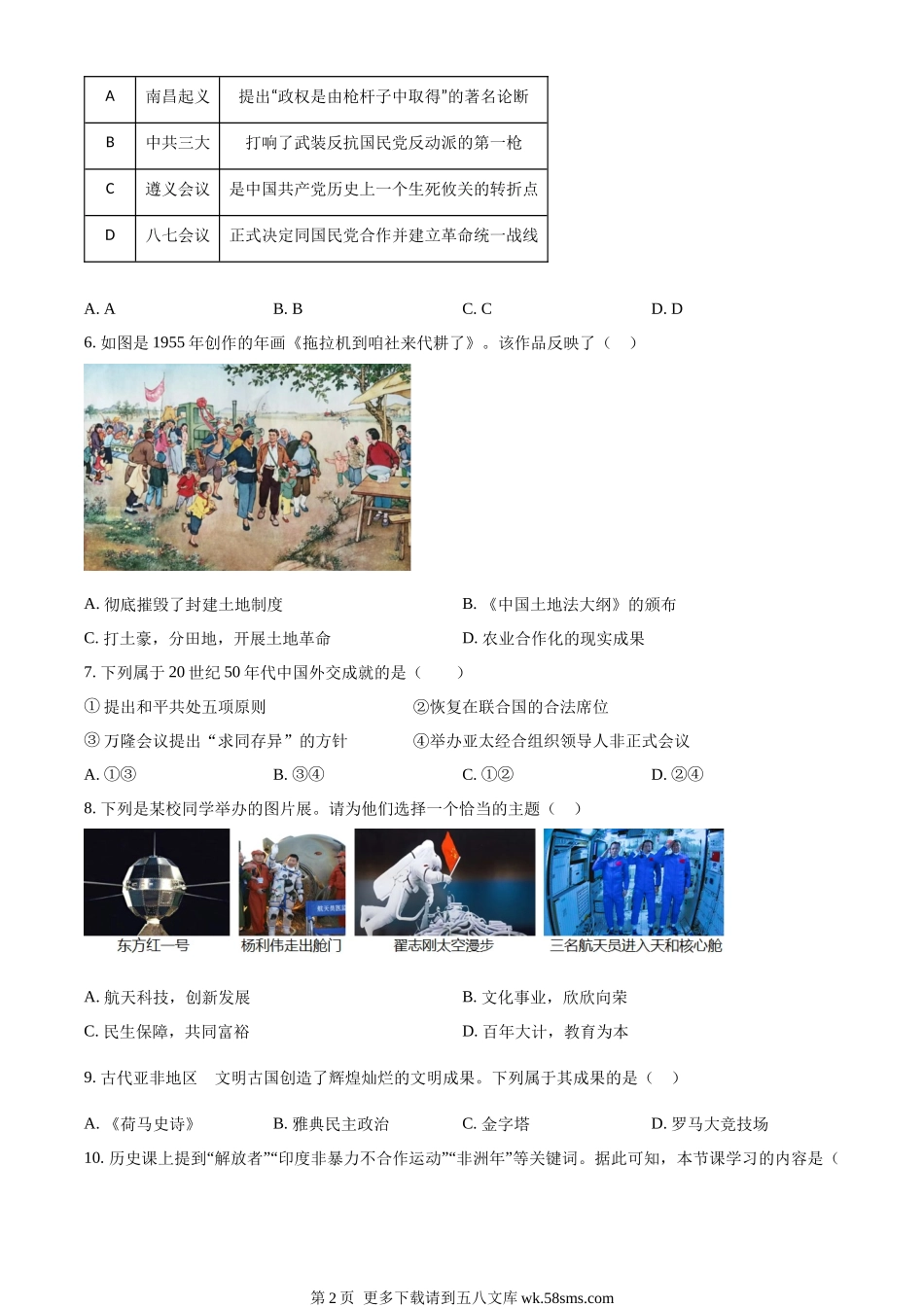 2023年陕西省中考历史真题(A卷)(原卷版).docx_第2页