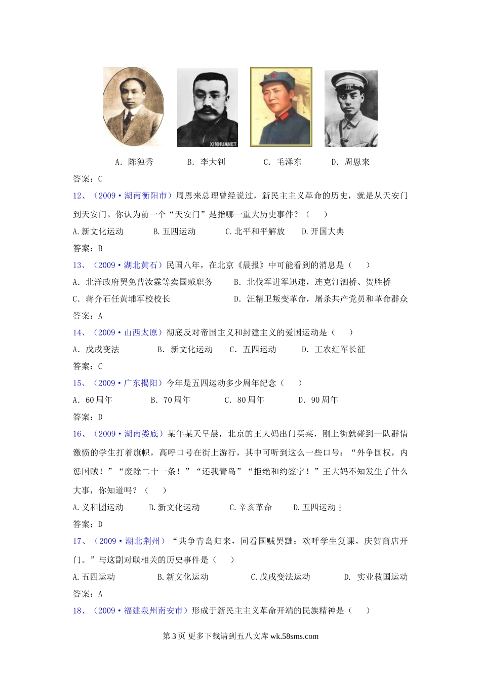 历史中考专题训练:选择题-新民主主义革命.doc_第3页