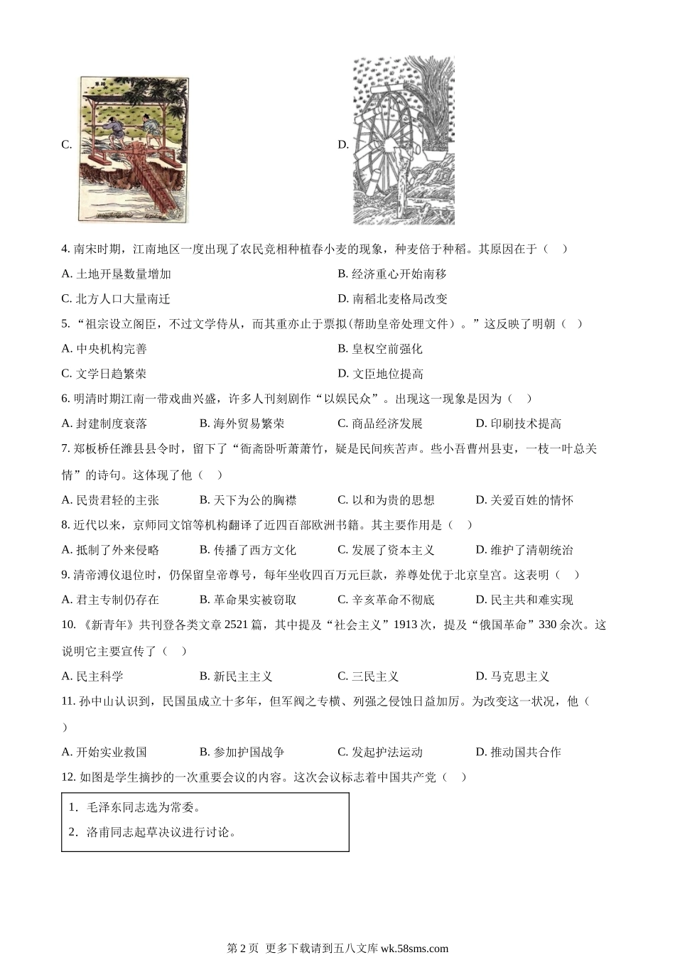 2023年山东省潍坊市中考历史真题(原卷版).docx_第2页