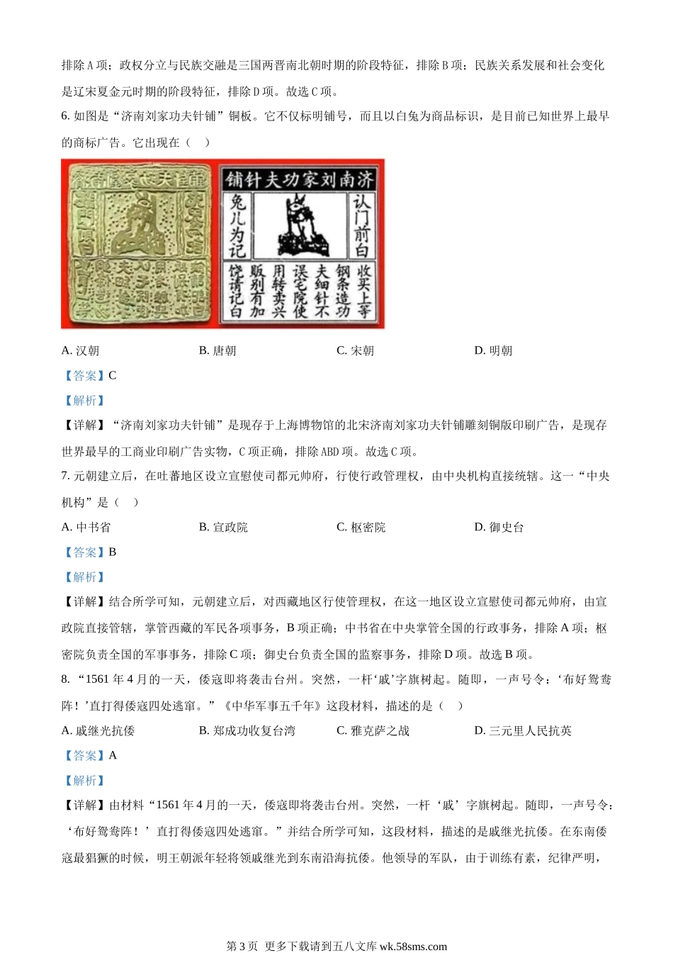 2023年山东省济南市中考历史真题(解析版).docx_第3页