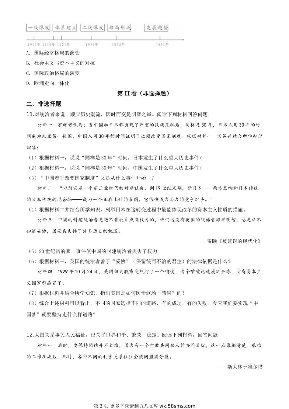 四川省遂宁市2020年中考历史试题(原卷版).doc_第3页