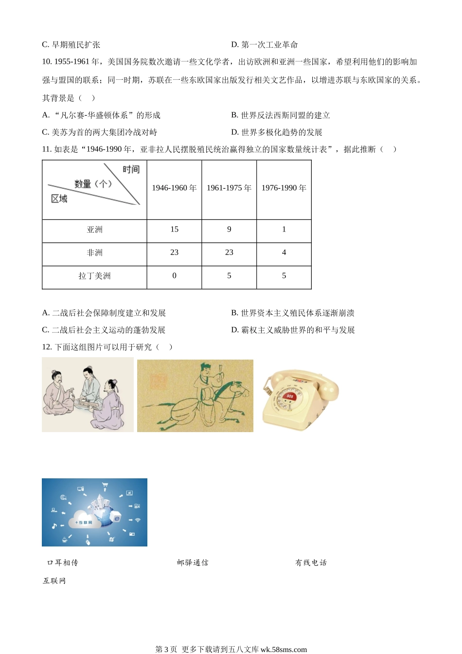 2023年宁夏回族自治区中考历史真题(原卷版).docx_第3页