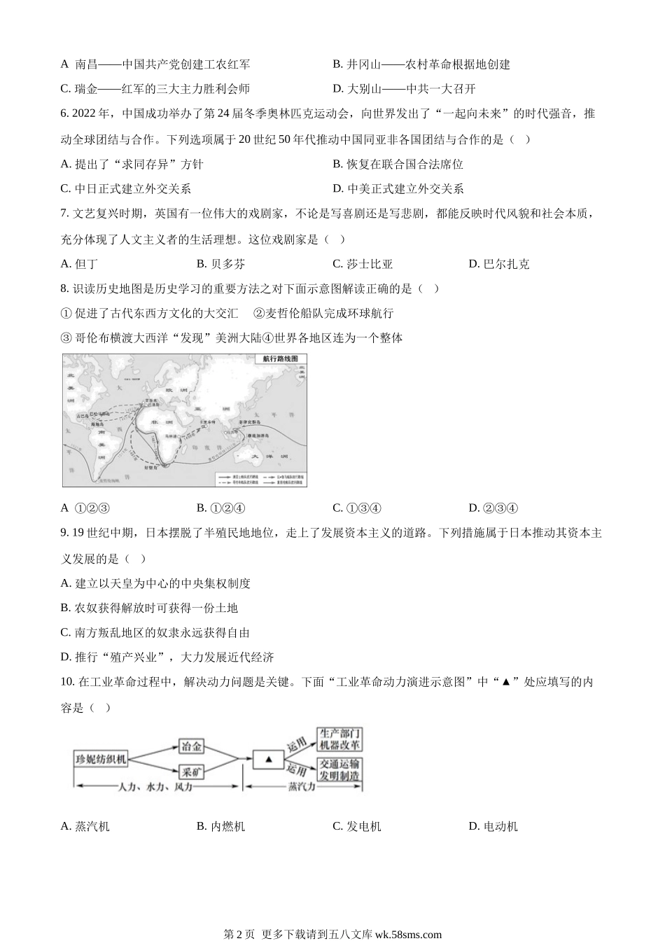 2022年辽宁省大连市中考历史真题(原卷版).docx_第2页