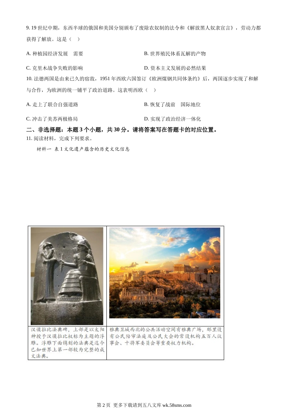 2023年内蒙古包头市中考历史真题(原卷版).docx_第2页