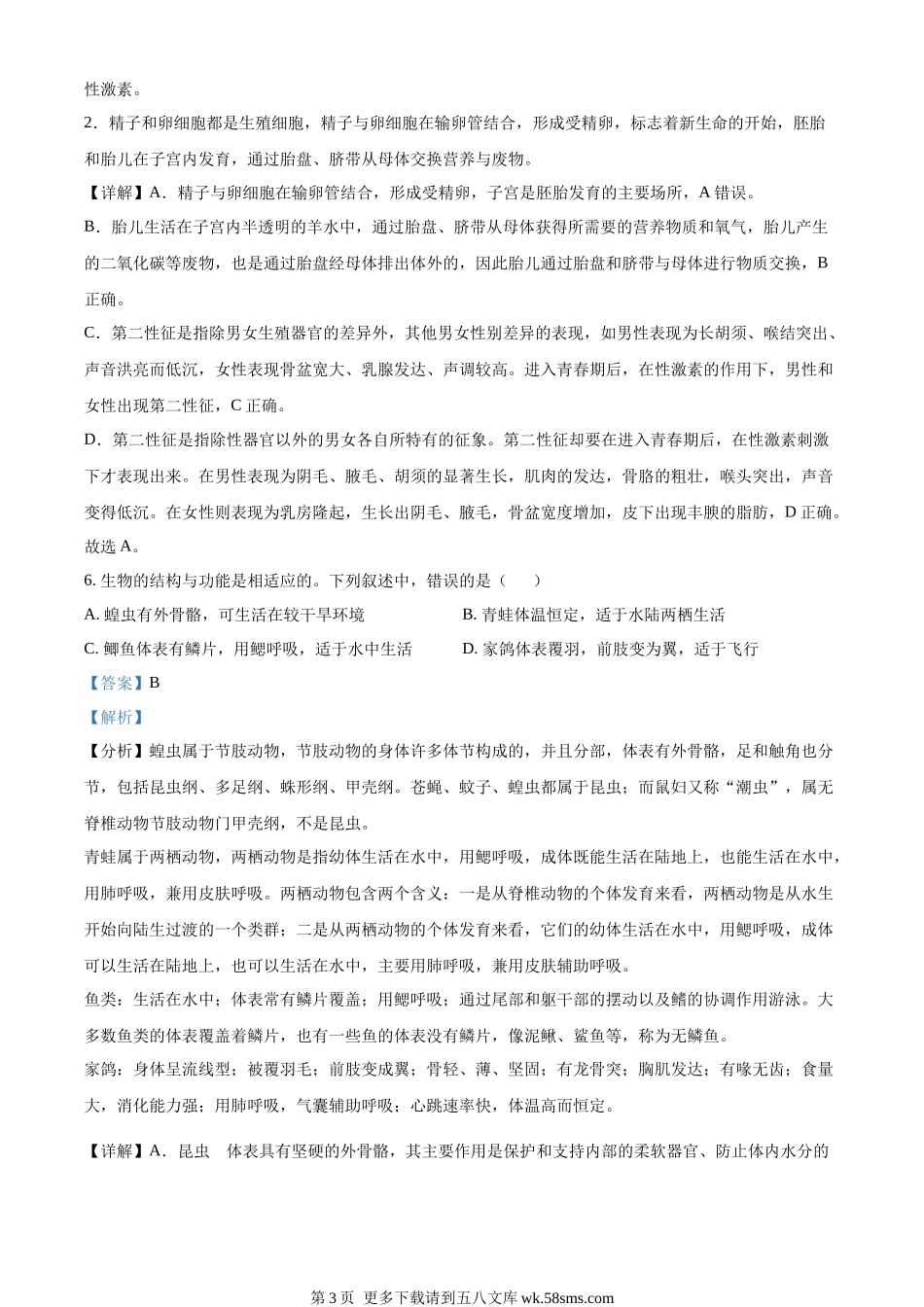 2022年甘肃省平凉市中考生物真题(解析版).docx_第3页