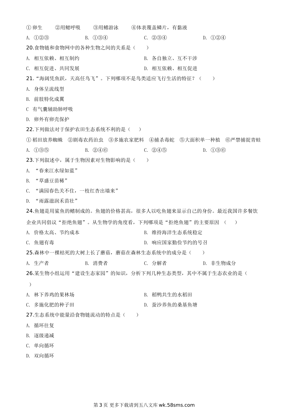 四川省巴中市2020年中考生物试题(原卷版).doc_第3页