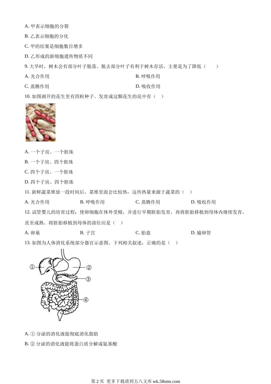 2023年山东省威海市生物中考真题(原卷版).docx_第2页