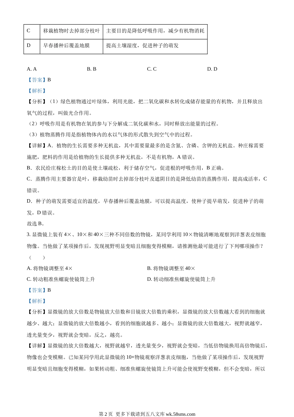 2022年山东省东营市中考生物真题(解析版).docx_第2页