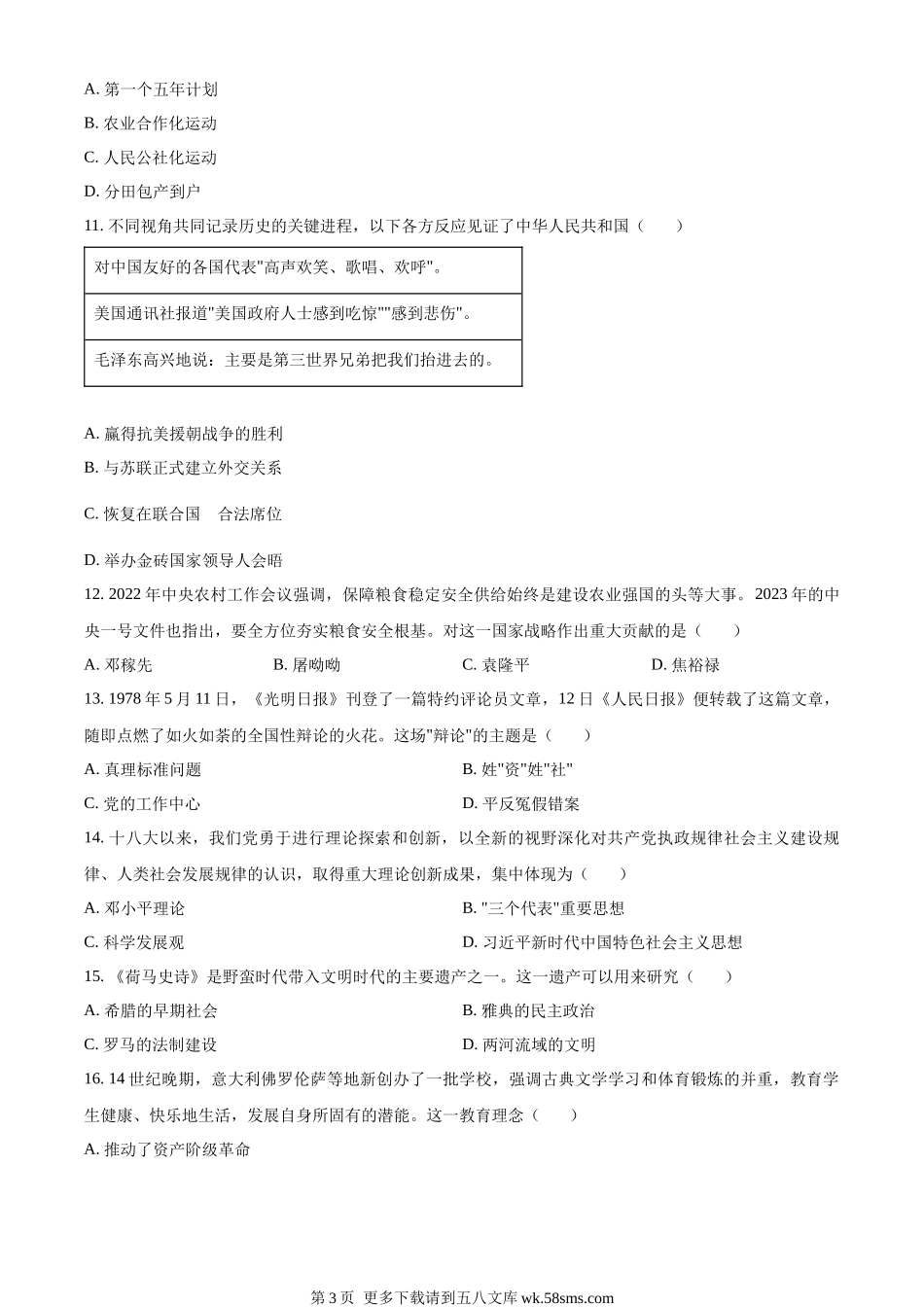 2023年江苏省宿迁市中考历史真题(原卷版).docx_第3页