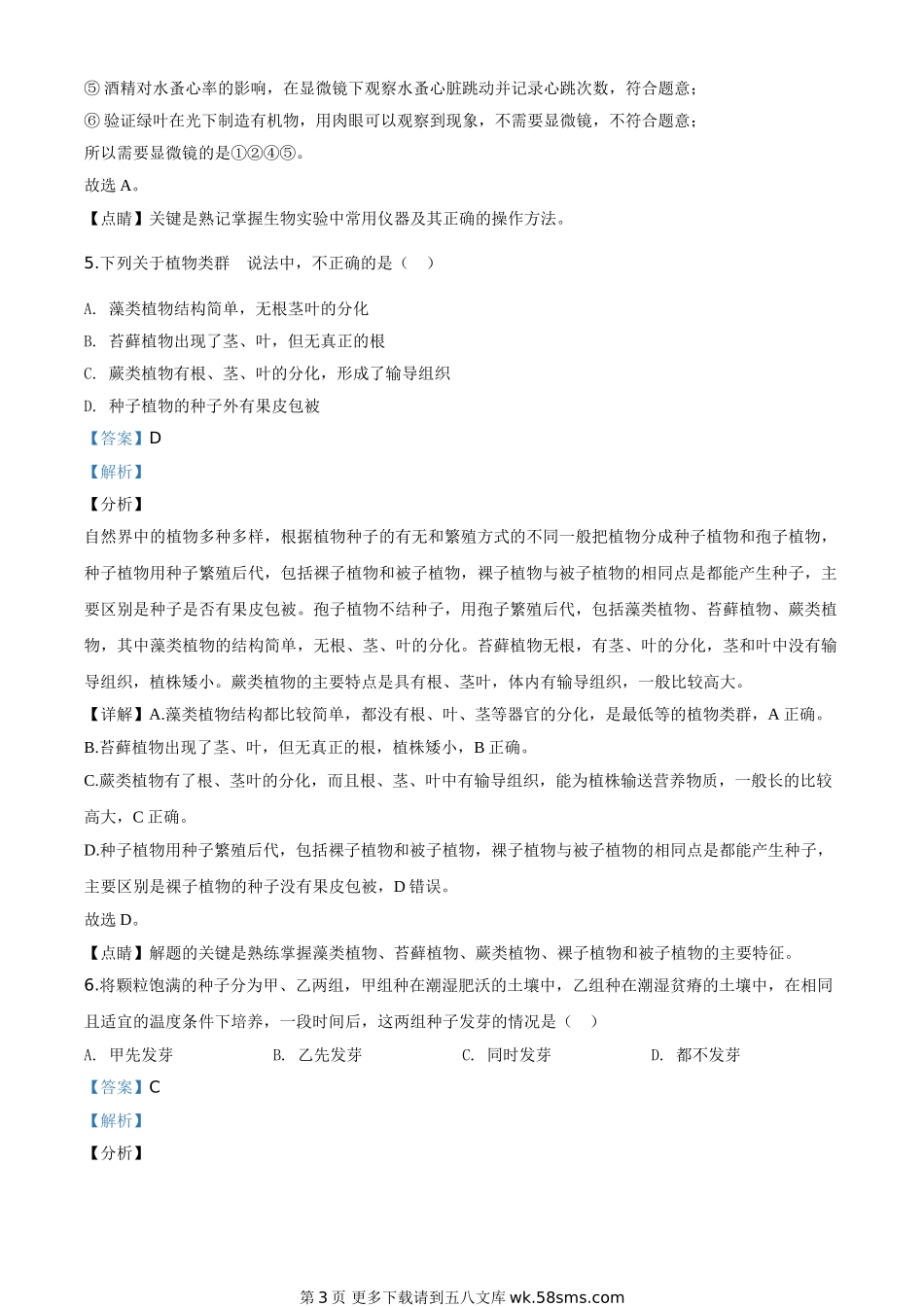 湖南省湘潭市2020年中考生物试题(解析版).doc_第3页