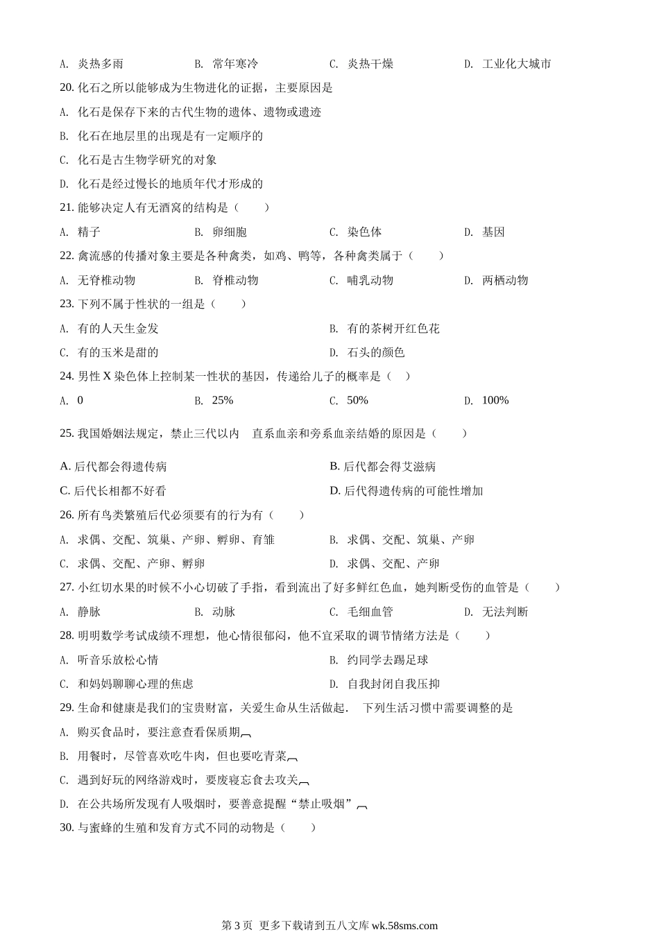 2022年辽宁省铁岭市中考生物真题(原卷版).docx_第3页