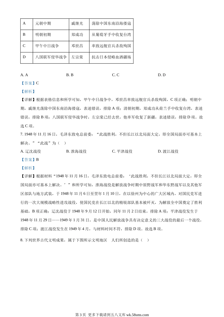 2023年江苏省连云港市中考历史真题(解析版).docx_第3页