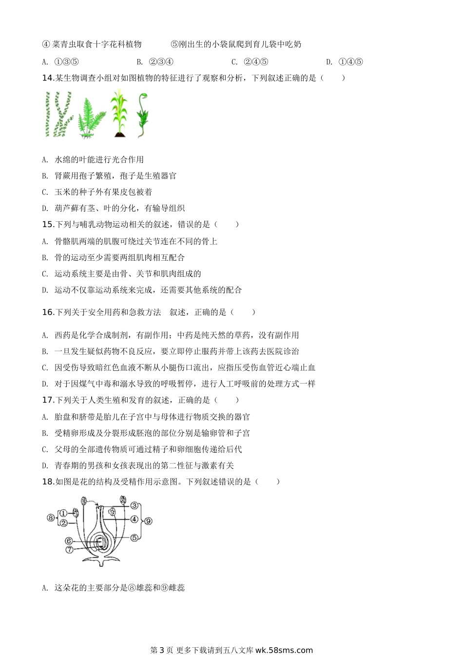 山东省青岛市2020年中考生物试题(原卷版).doc_第3页