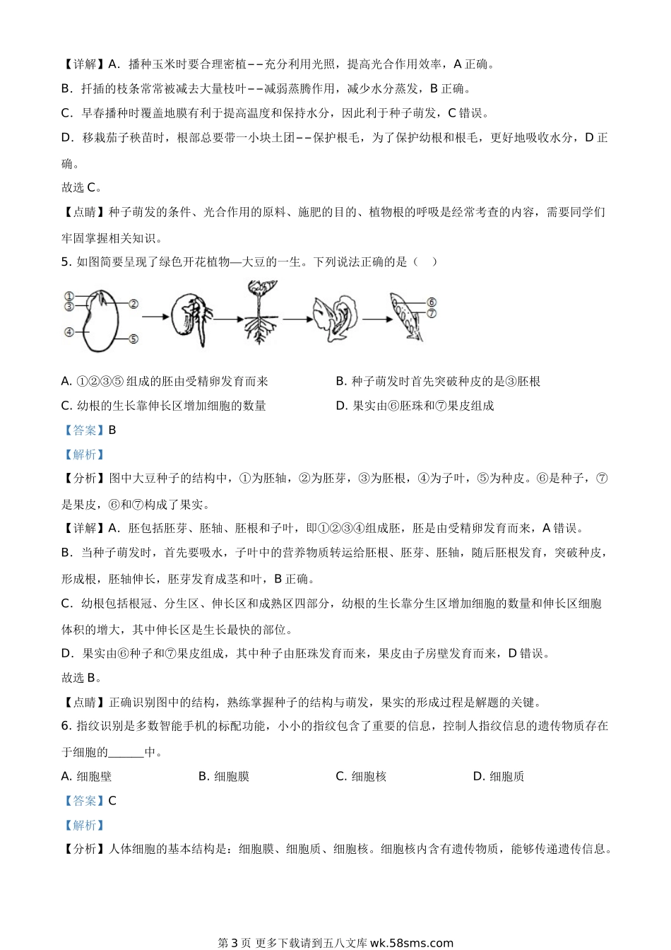 湖北省宜昌市2021年中考生物试题(解析版).doc_第3页