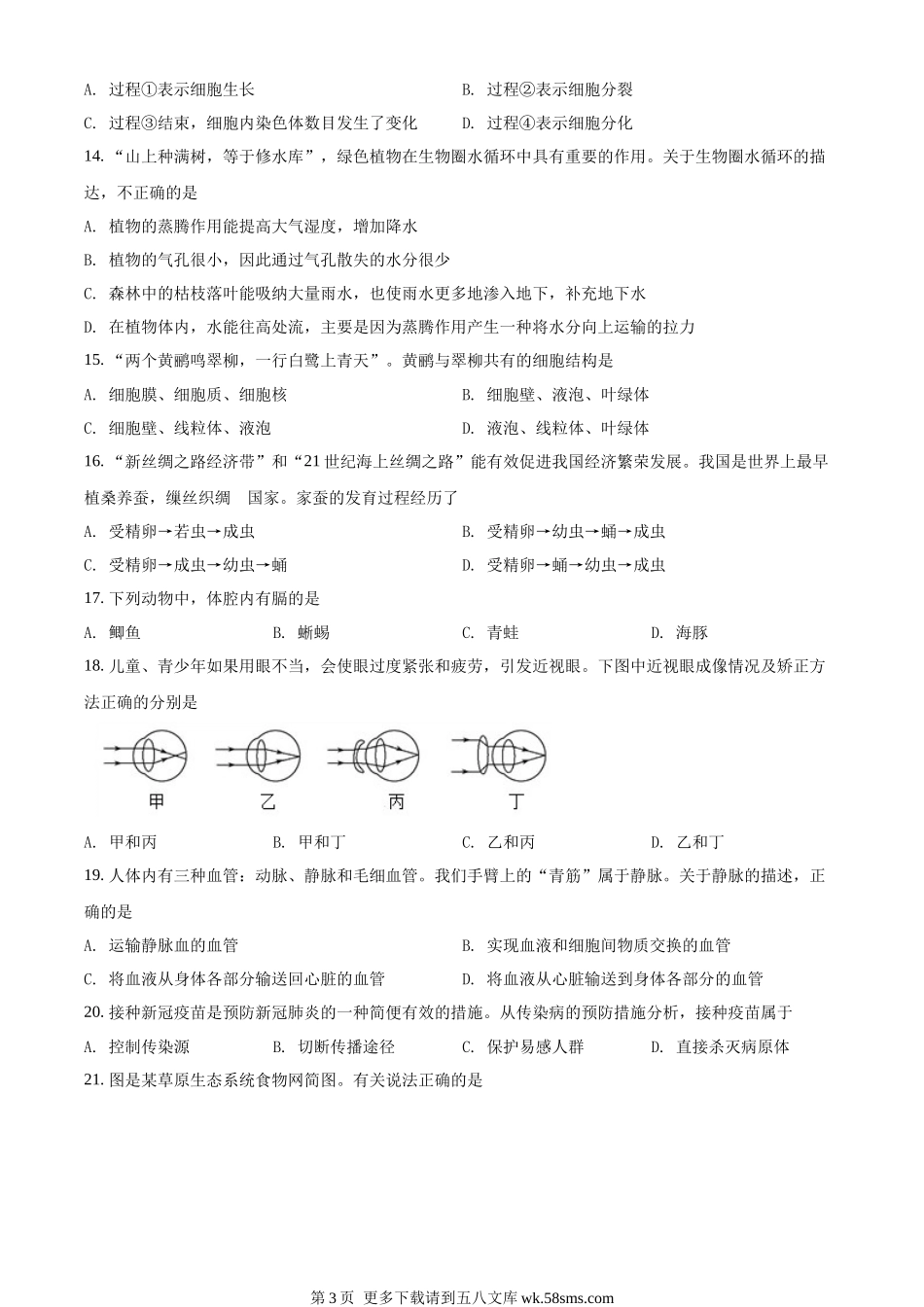 2022年江苏省宿迁市中考生物真题(原卷版).docx_第3页