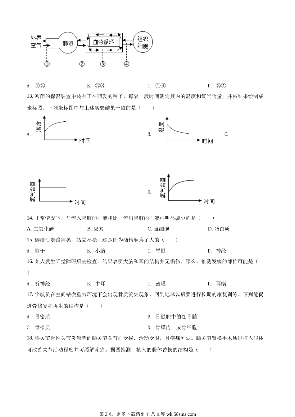 2022年江苏省苏州市中考生物真题(原卷版).docx_第3页