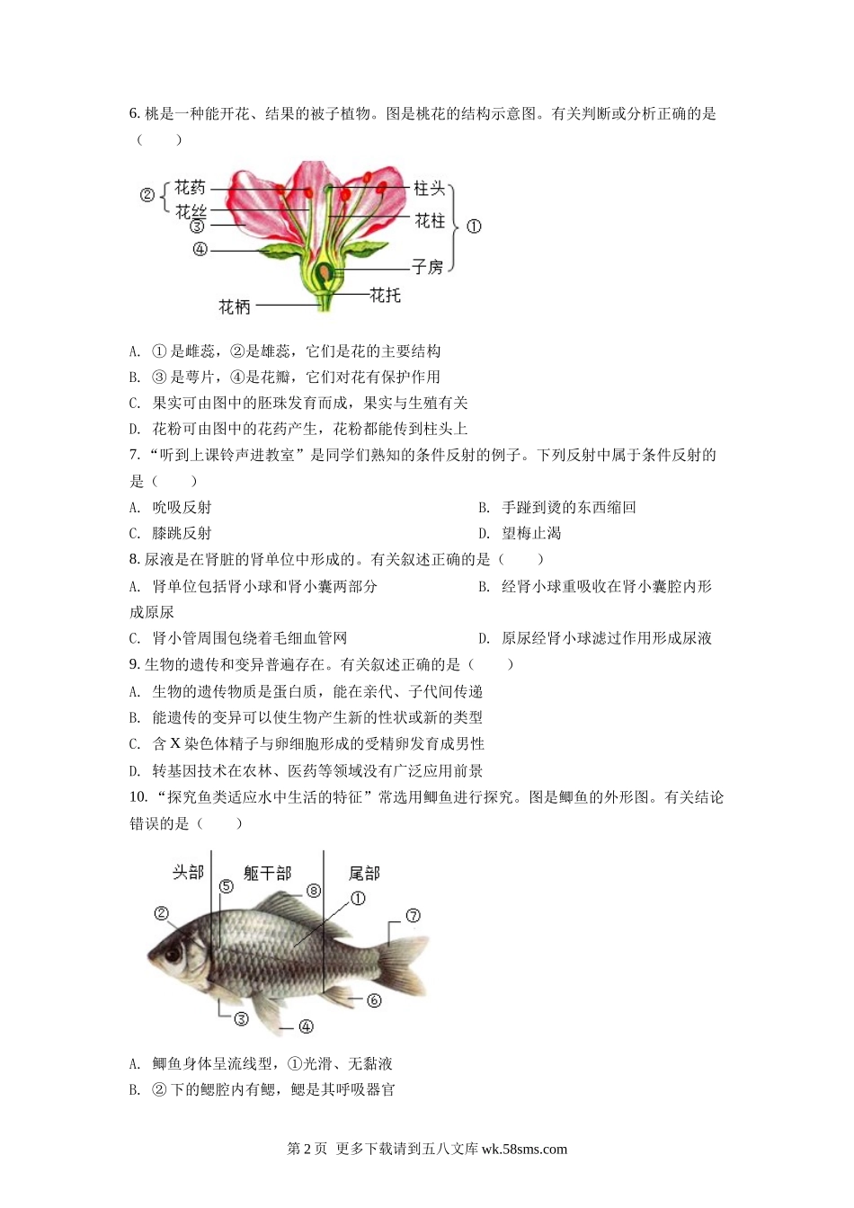 2022年江苏省连云港市中考生物真题(原卷版).docx_第2页