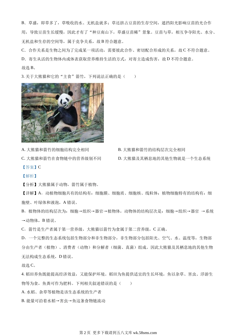2022年湖南省株洲市中考生物真题(解析版).docx_第2页