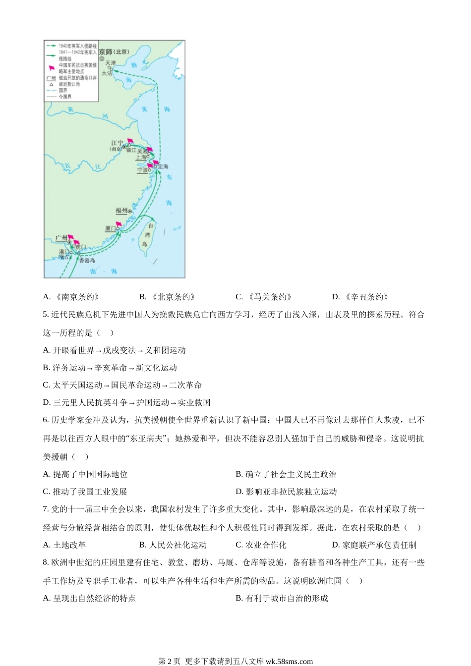 2023年贵州省铜仁市中考历史真题(原卷版).docx_第2页