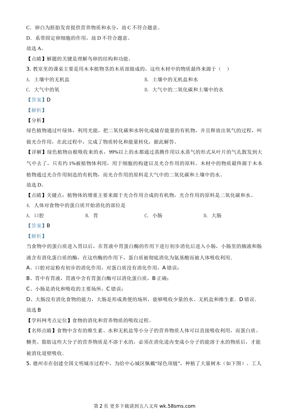 山东省德州市2020中考生物试题(解析版).doc_第2页