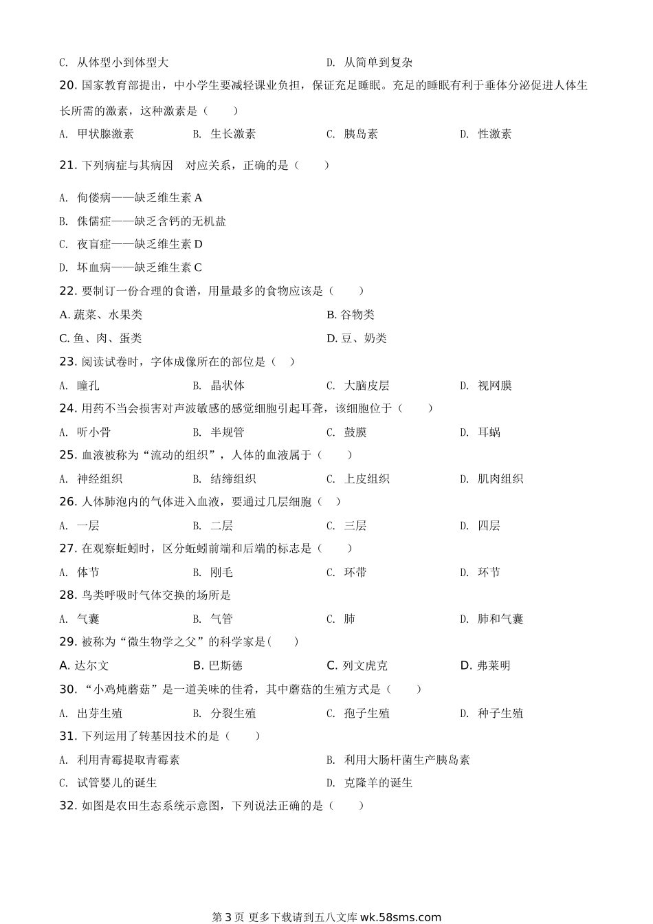 黑龙江省龙东地区2021年中考生物试题(原卷版).doc_第3页