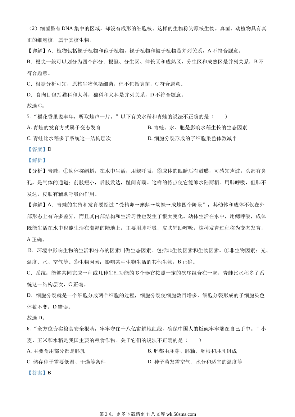2023年湖南省常德市中考生物真题(解析版).docx_第3页
