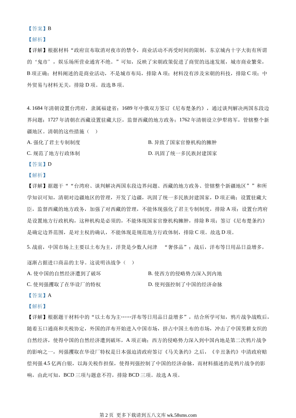 2023年甘肃省定西市中考历史真题(解析版).docx_第2页