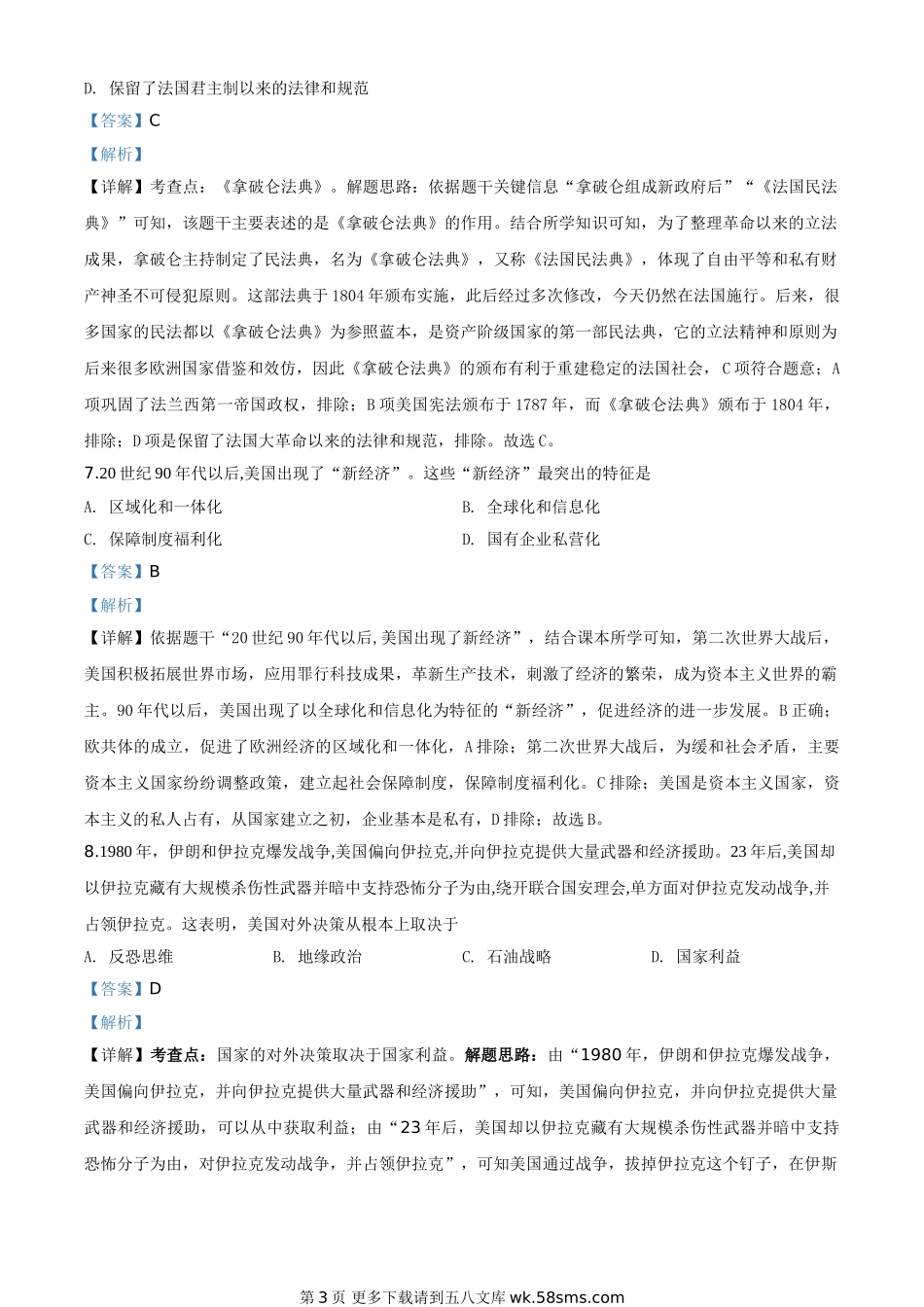 湖北省黄冈市2020年中考历史试题(解析版).doc_第3页