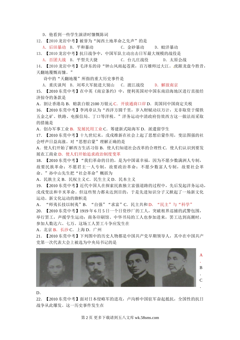 2010年全国中考历史真题按课标汇编--中国近代史.doc_第2页