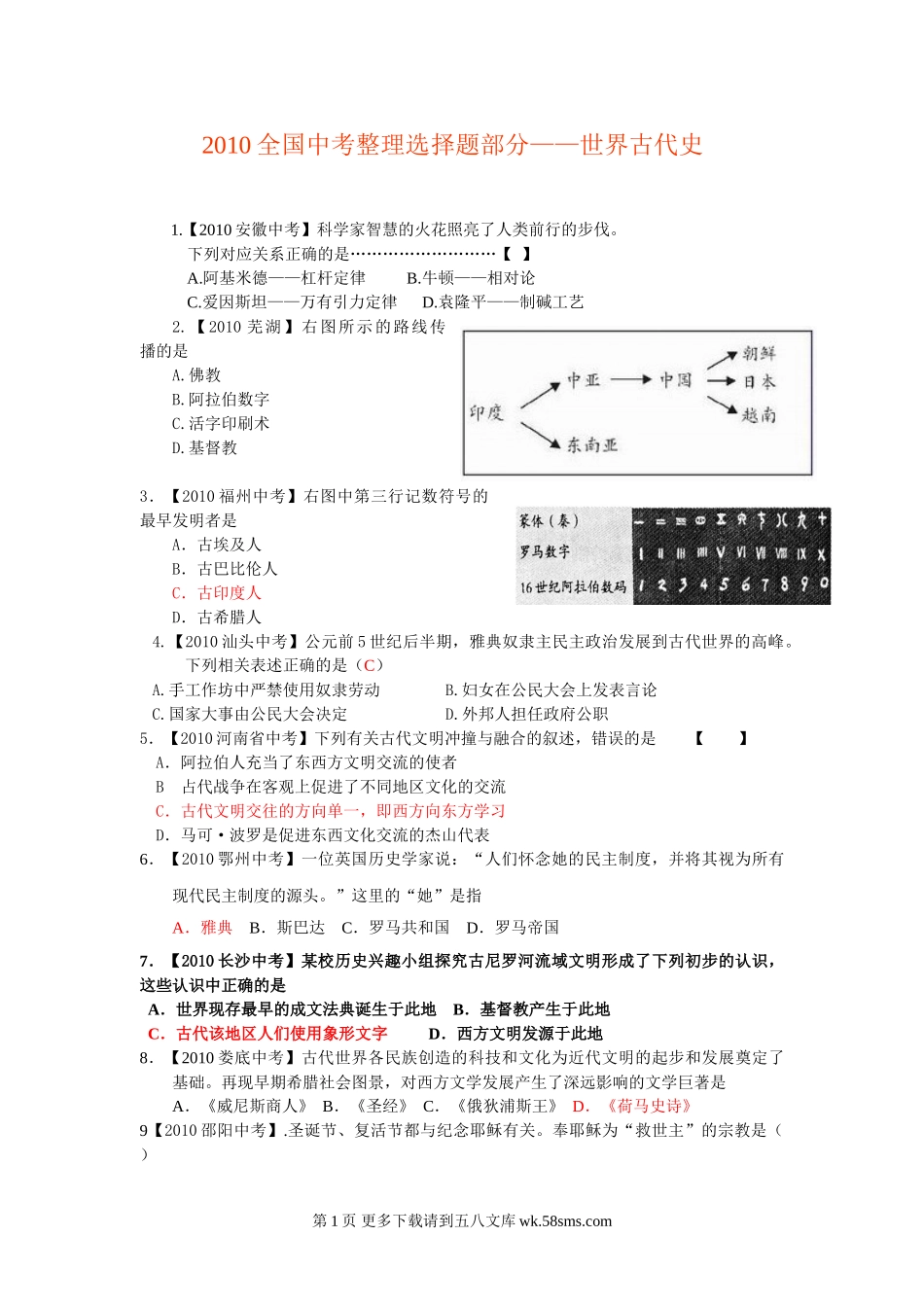 全国中考历史真题按课标汇编--世界古代史.doc_第2页
