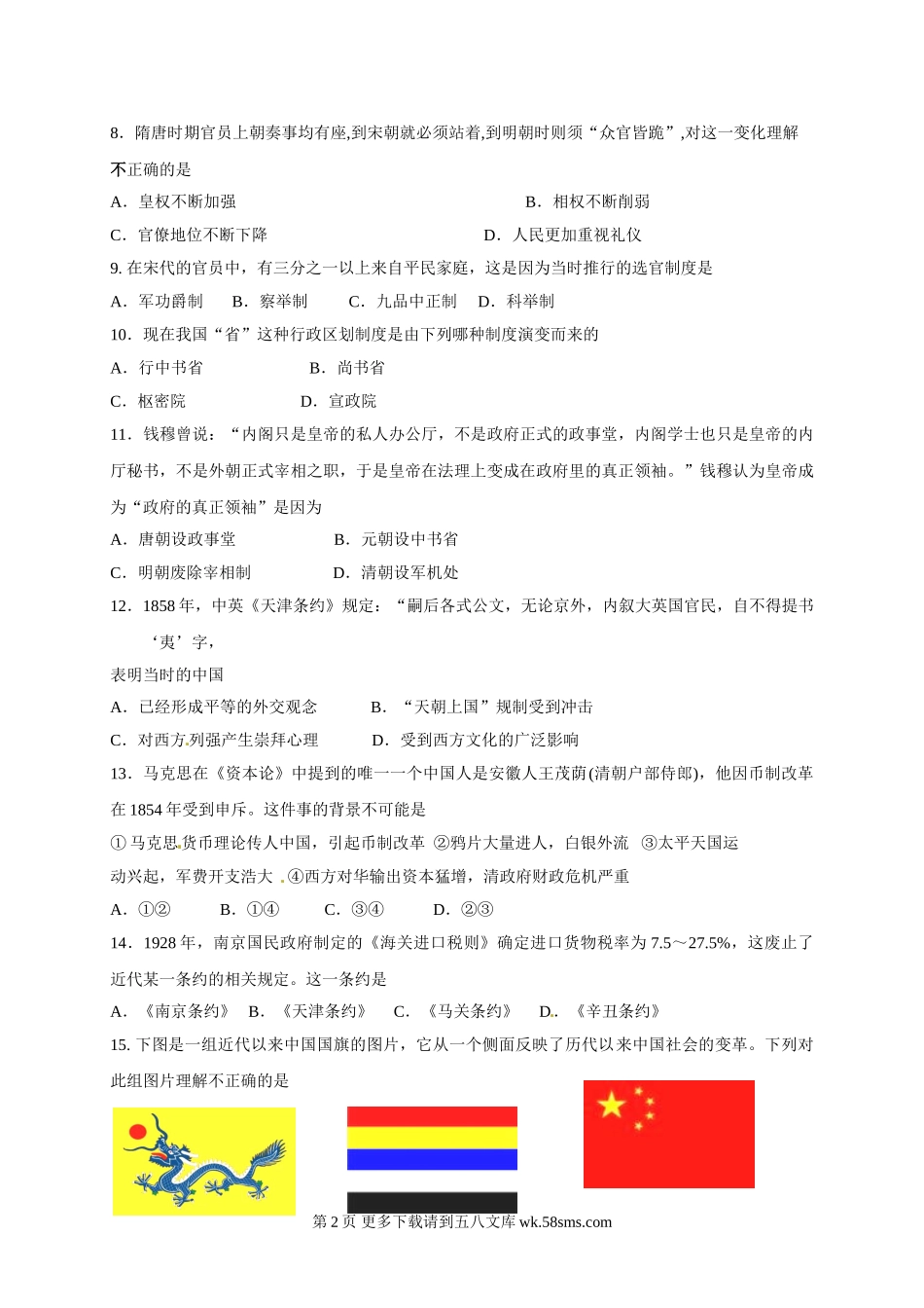 九江一中高一历史上学期期末试卷及答案.doc_第2页