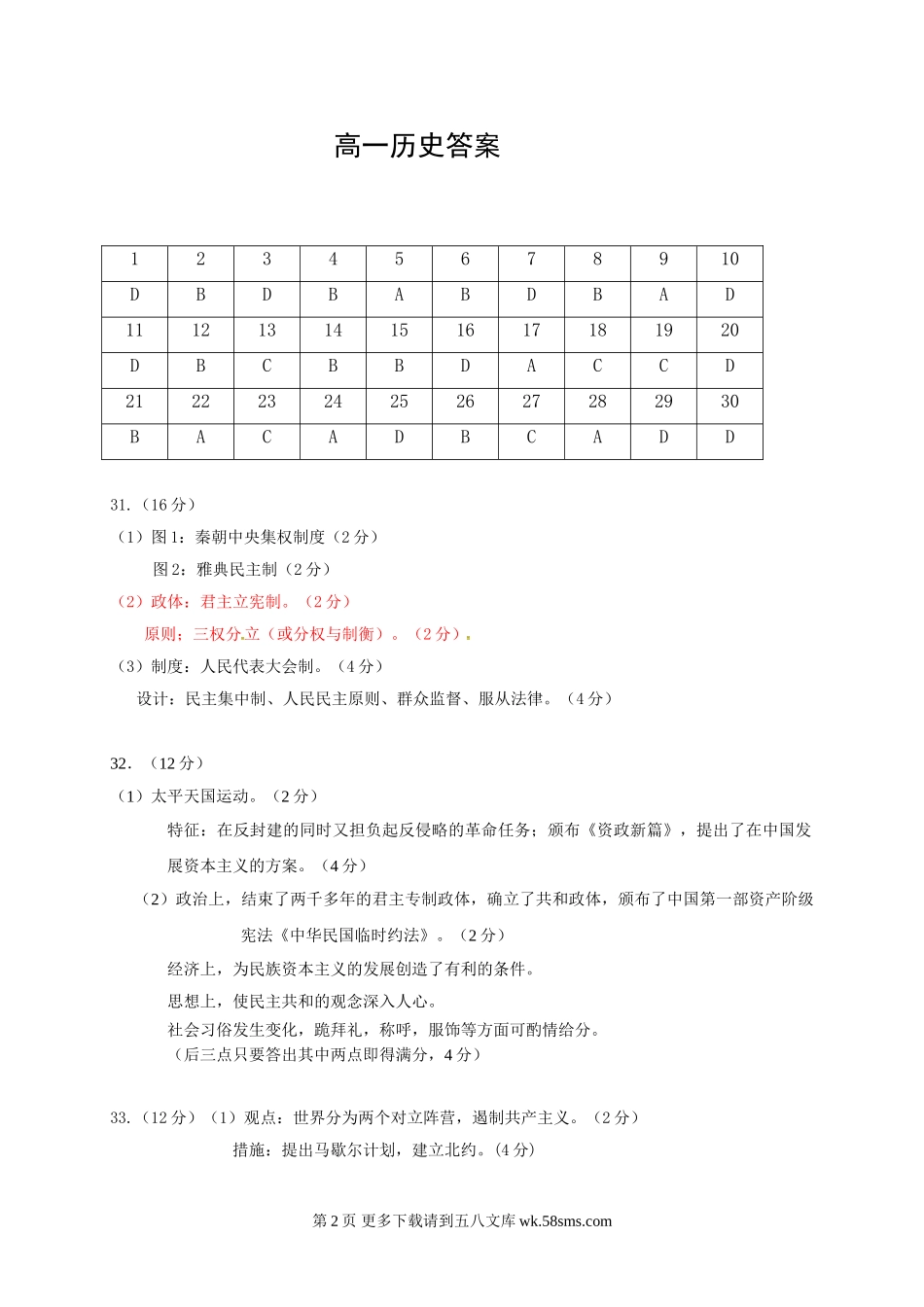 东辽一中高一上学期历史期末考试题及答案.doc_第2页