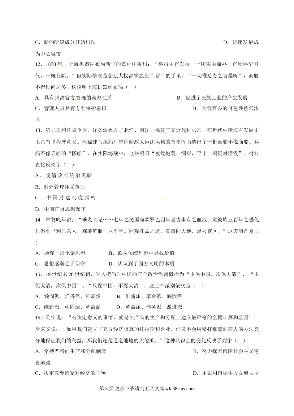 荆州中学高二历史上学期期末试卷及答案.doc_第3页