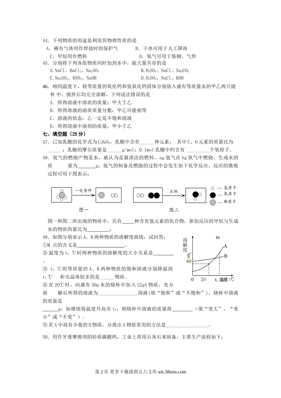 上海市中考化学基础复习题及答案化学练习卷(吴国英).doc_第2页