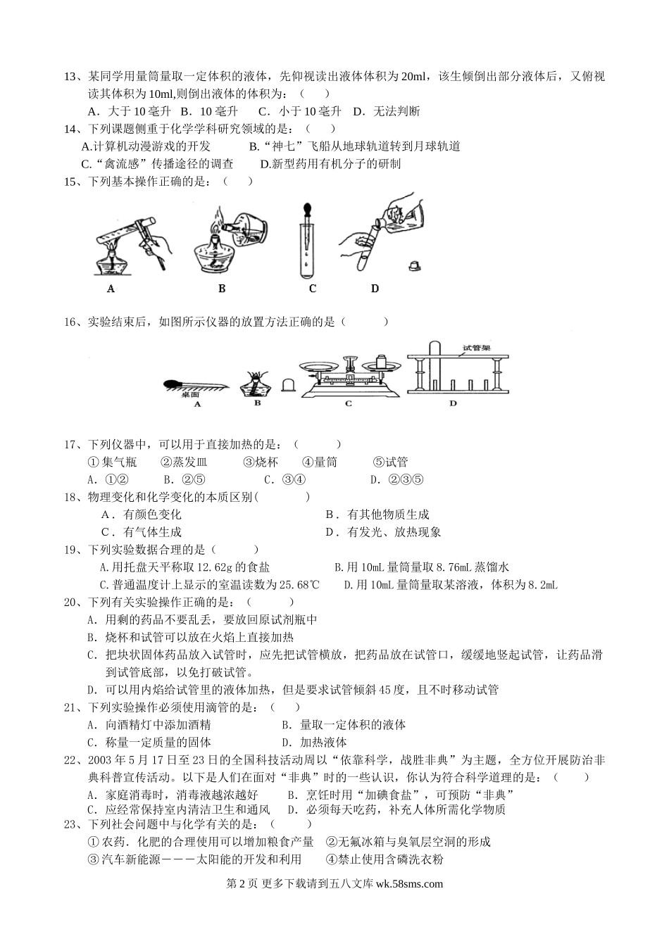 第一单元走进化学世界一.选择题1、原子论和分子论学说的创立,奠定了近代化学的基础。其科学家是()A、门捷列夫B、道尔顿和阿伏加德罗C、汤姆生D、爱迪生2、我国古代有几大闻名世界的化学工艺是()A、烧陶瓷、指南...