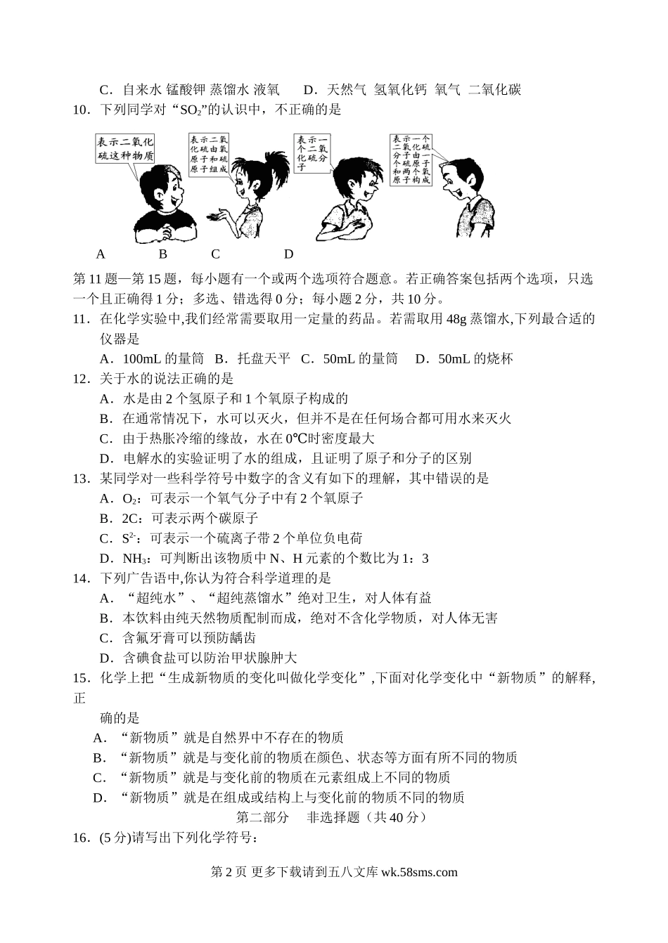 2012下学期化学期中考试试卷.doc_第2页