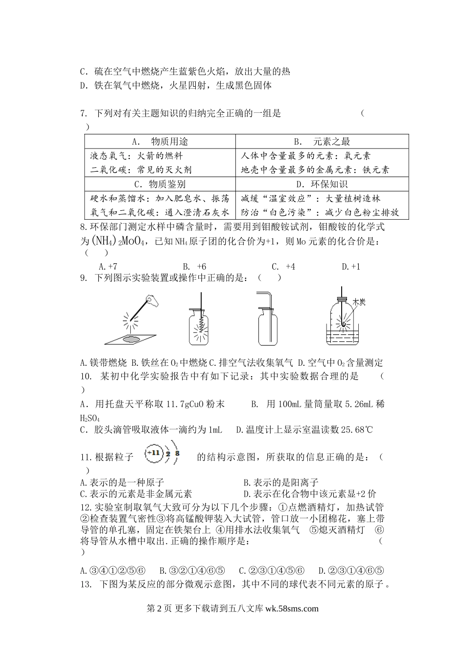 扬中2011-2012第一学期沪教版九年级化学期中试卷.doc_第2页