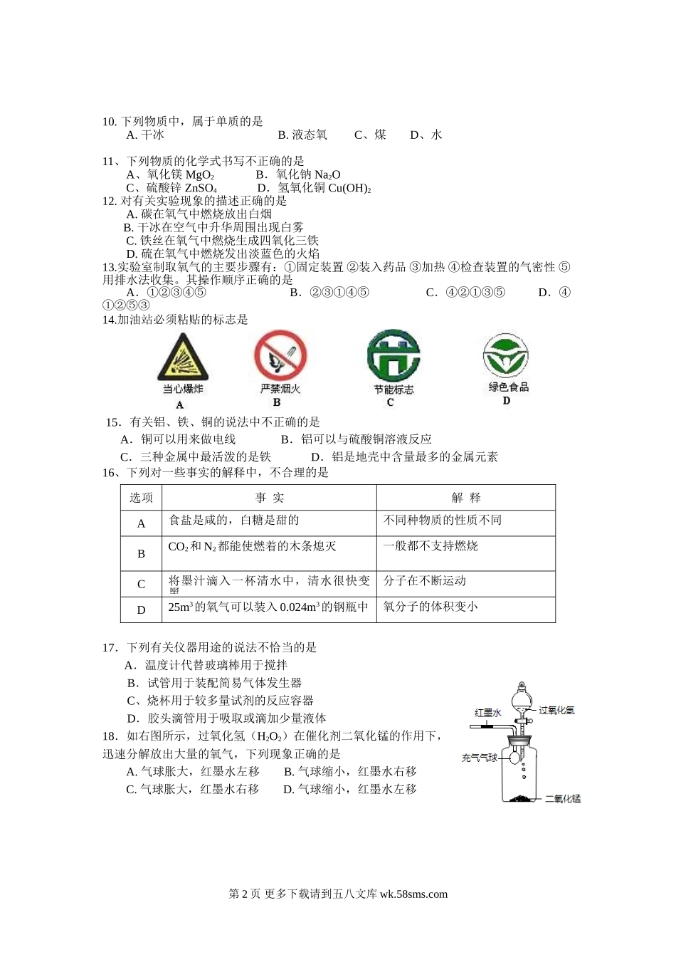 2010-2011年朝阳区九年级化学期末试题及答案.doc_第2页