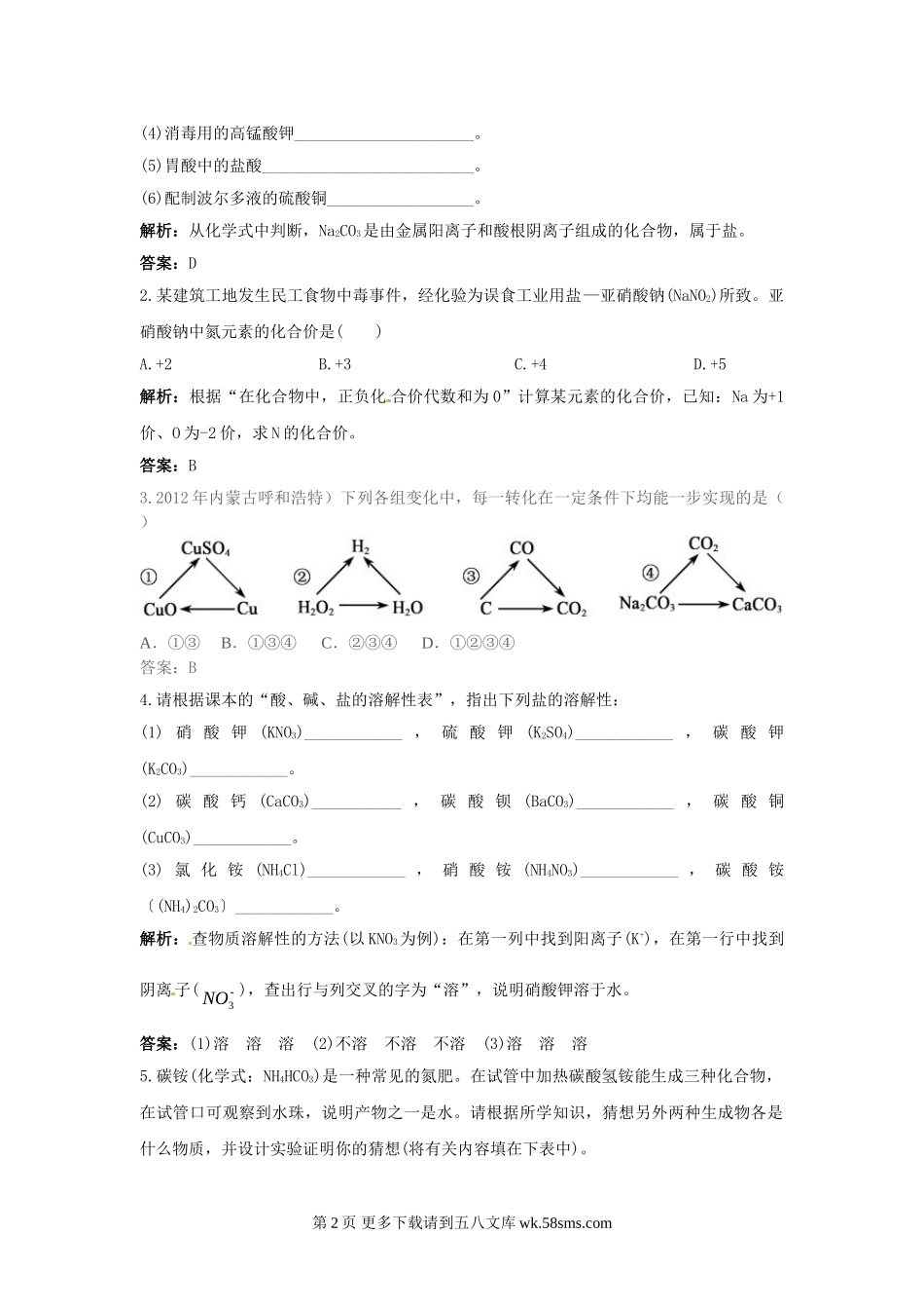 11.1生活中常见的盐习题及答案解析.doc_第2页