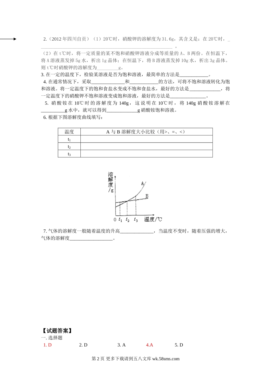9.2溶解度一.选择题1.下列有关溶液的说法不正确的是()A.汽水和蔗糖水都属于溶液B.物质的溶解度不一定都随温度升高而增大C.在一定条件,饱和溶液与不饱和溶液之间可相互转化D.某物质在100g溶剂里达到饱和状...