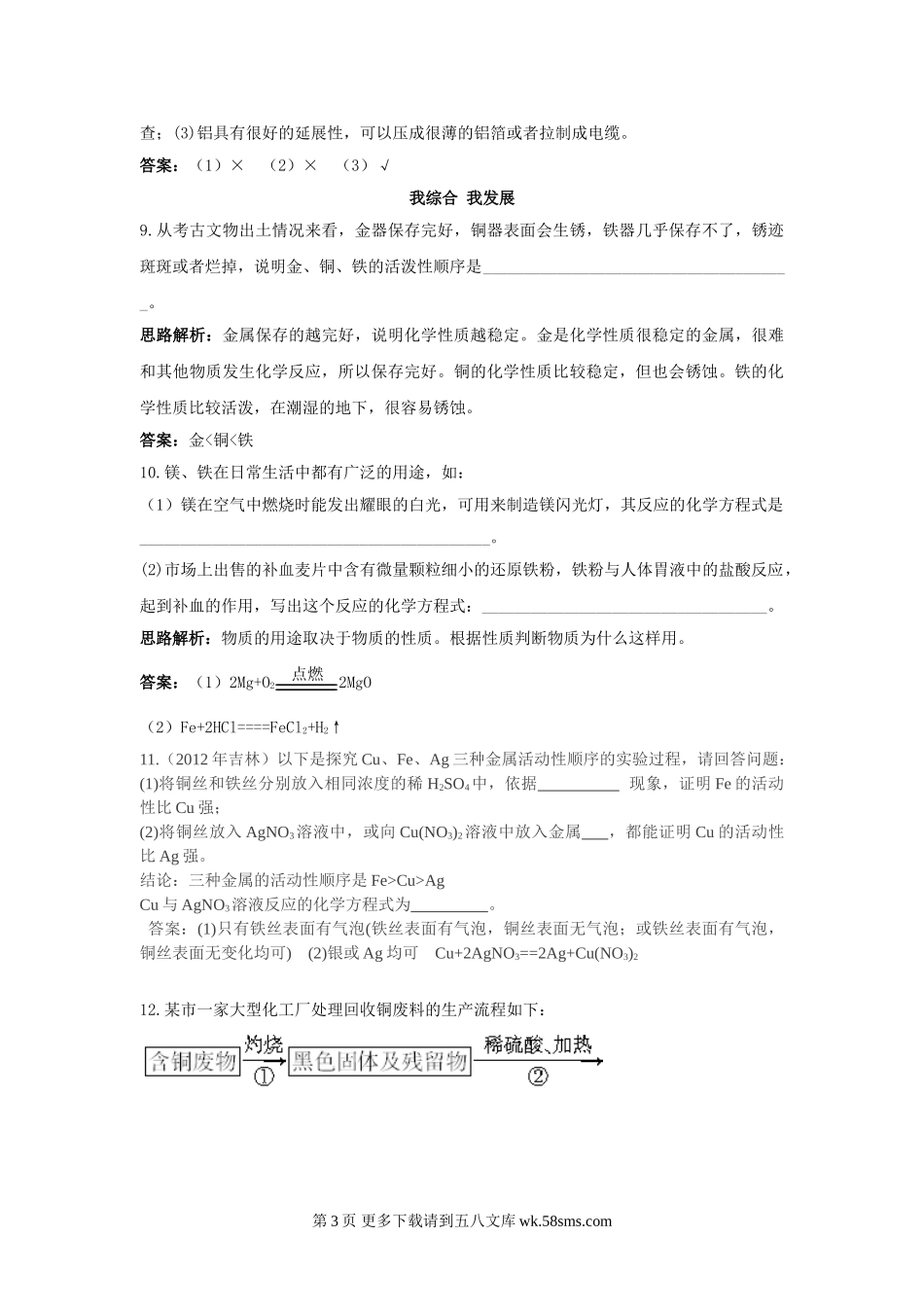 8.2金属的化学性质练习题及答案.doc_第3页