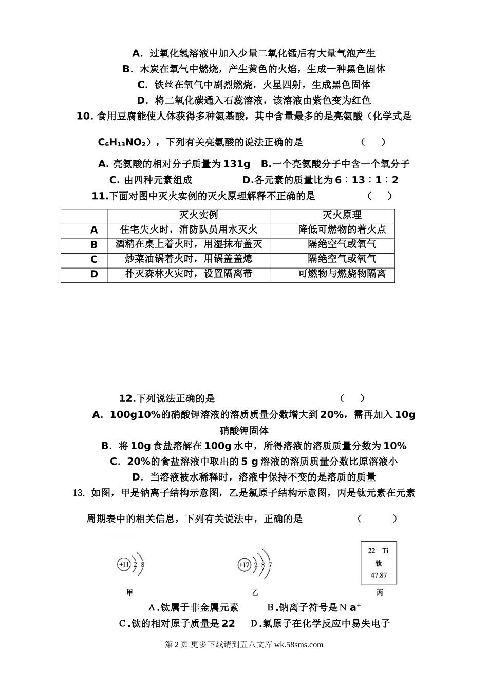 鲁教版九年级化学2013~2014学年度第一学期期末检测题.doc_第2页