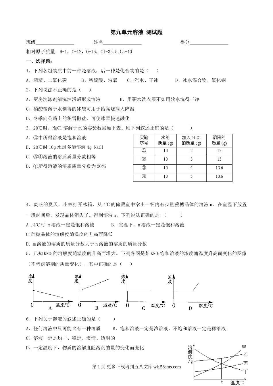 化学九年级上第九单元溶液单元测试下.doc_第1页