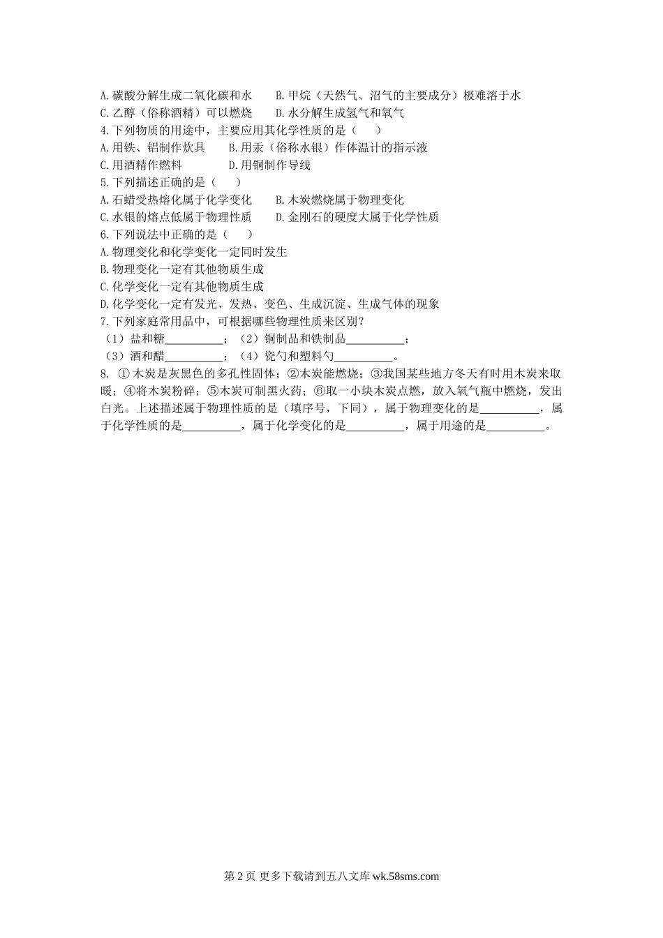 化学九年级人教版课题1物质的变化和性质导引解析及检测.doc_第2页