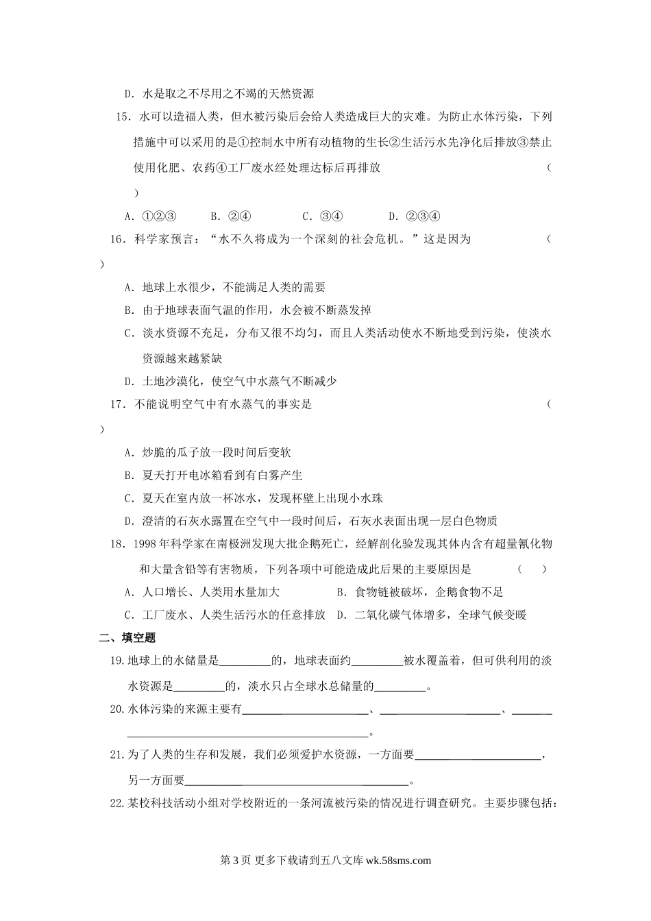化学九年级人教版化学第三单元课题4爱护水资源同步练习.doc_第3页