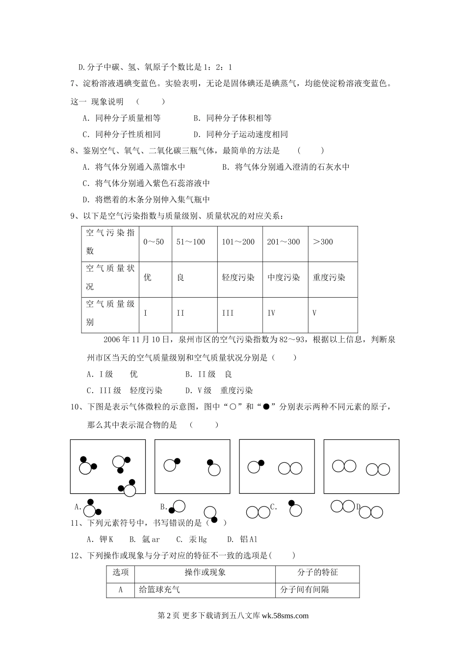 福建泉州实验中学09-10学年上期中考试九年级试卷.doc_第2页