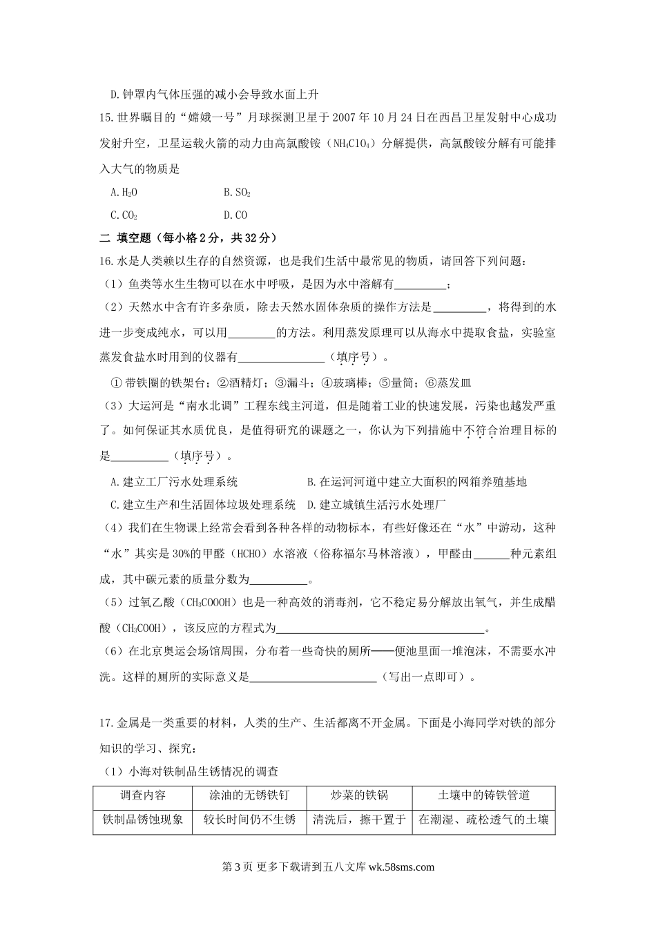 09-10学年福建晋江子江中学九年级期末练习卷三.doc_第3页