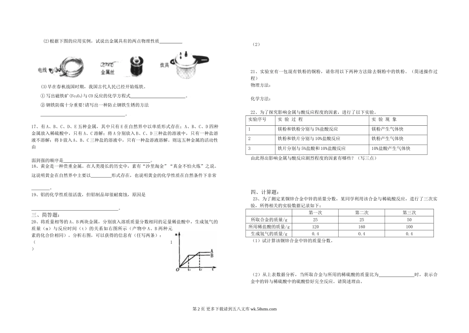第八单元 金属和金属材料复习题及答案.doc_第2页