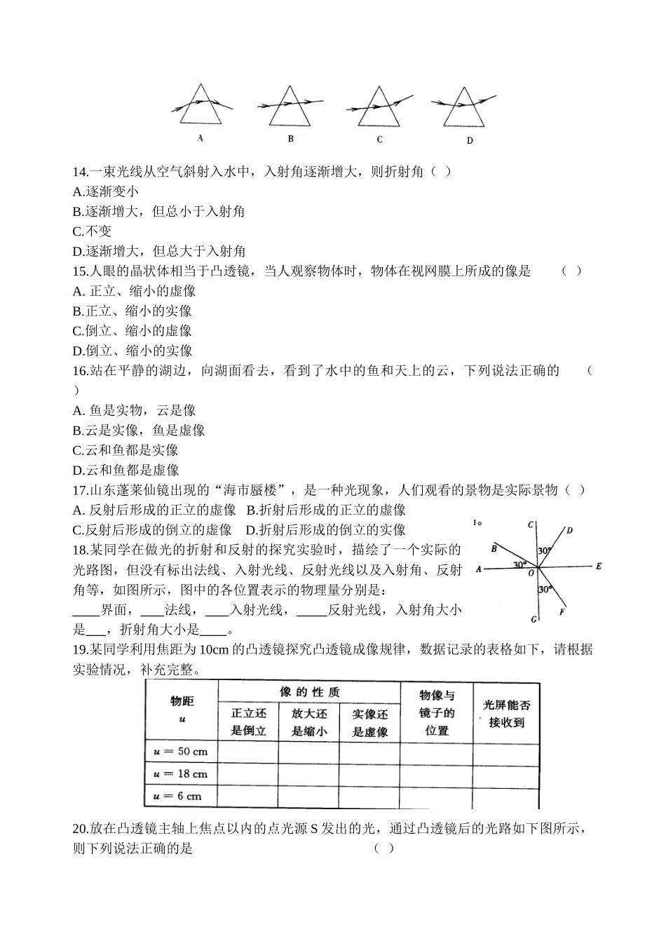 八年级物理初二物理第四章透镜及规律单元同步练习题题及评价.doc_第2页