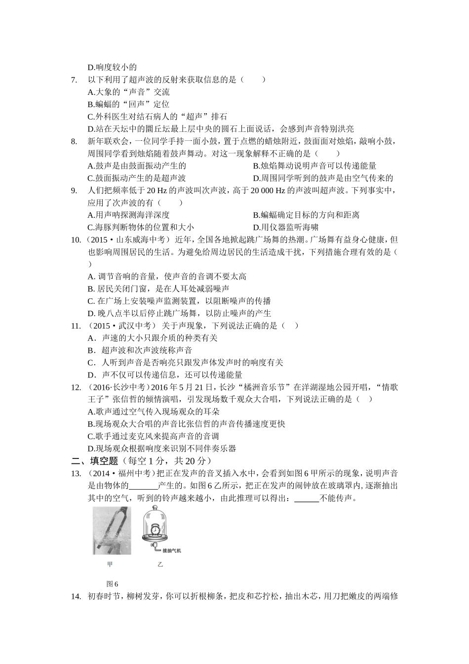 八年级物理初二物理教材全解2016年人教版八年级物理第二章 声现象检测题含答案解析.doc_第2页
